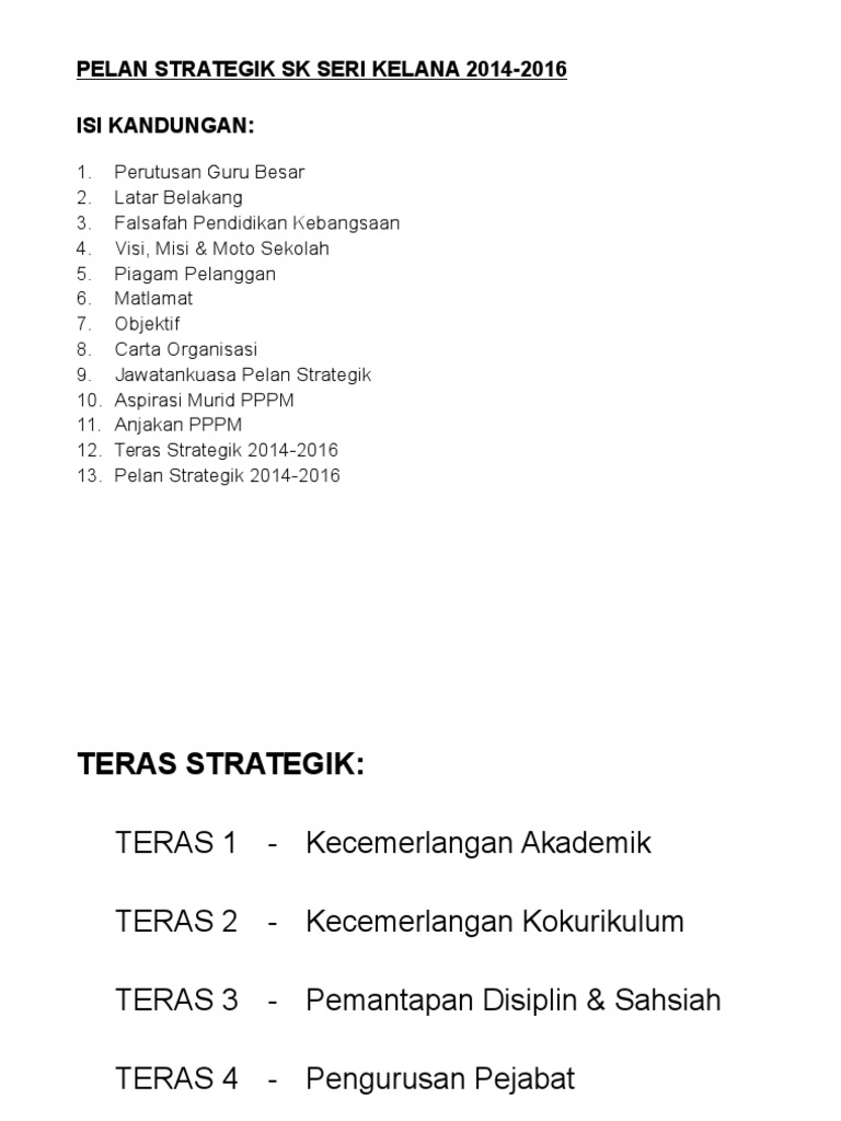 Perancangan strategik kali ini lebih berfokus kepada peningkatan prestasi semua matapelajaran disamping. Setiap sekolah perlu mempunyai perancangan strategik yang tersendiri. Pso Induk 25 Feb 2021 Colour Pdf.